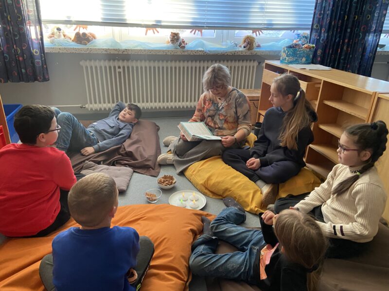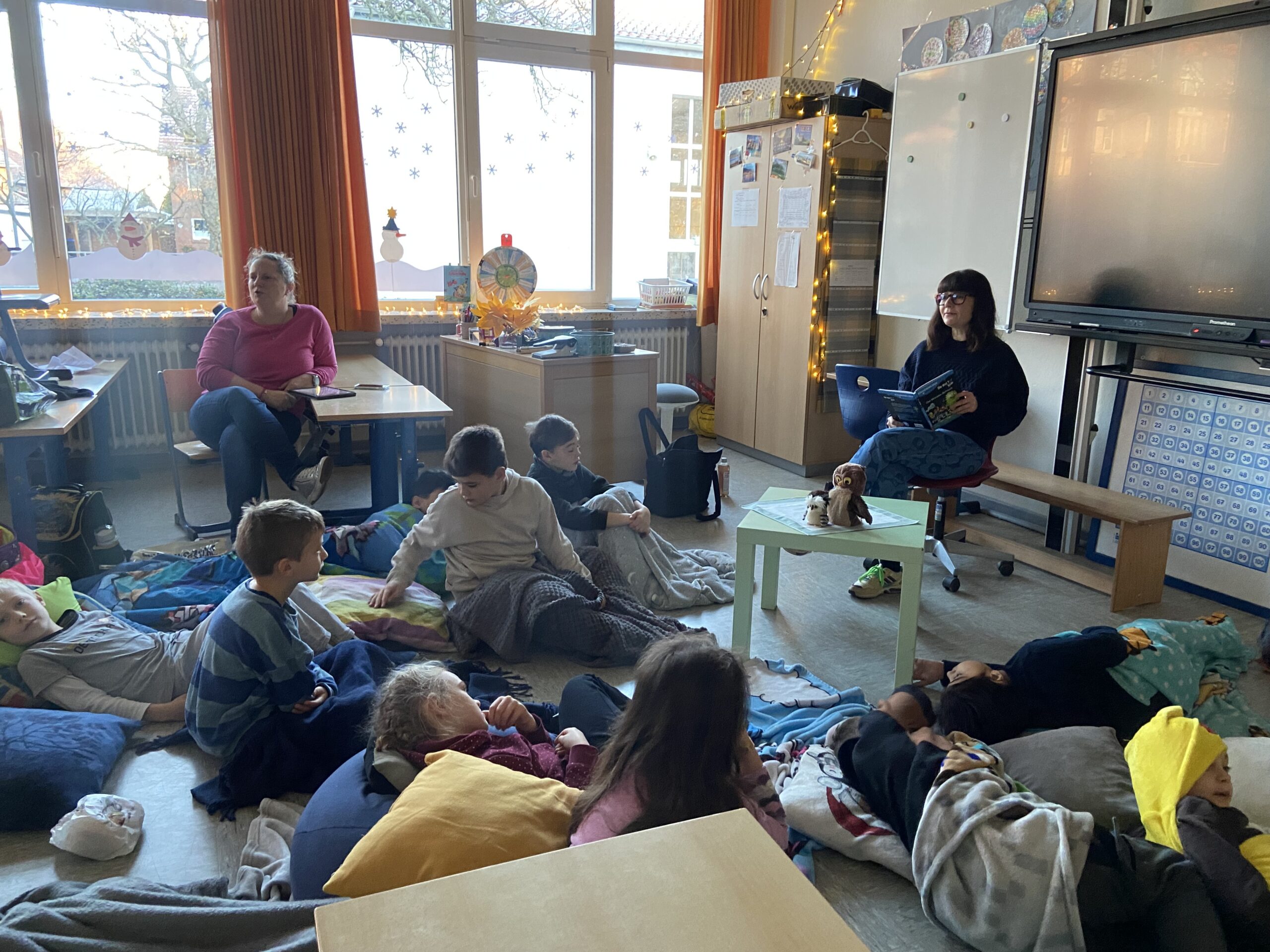 Schon am Morgen herrschte gespannte Vorfreude: In den Klassenräumen sah man Lichterketten, Kerzen und Kuscheldecken, was für eine ganz besonders gemütliche Atmosphäre sorgte. In jedem Raum begrüßte ein Vorleser oder eine Vorleserin die Jungen und Mädchen.